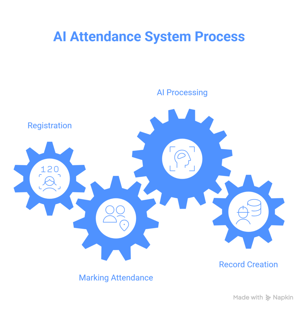 AI Attendance Management means using artificial intelligence to track, record, and manage attendance automatically.